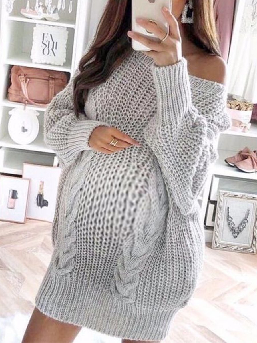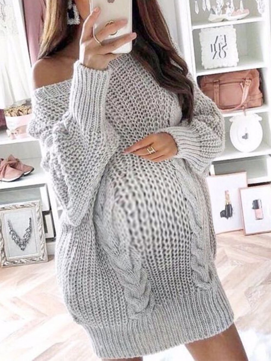 Maternity Sexy One-shoulder Long-sleeved Sweater Dress